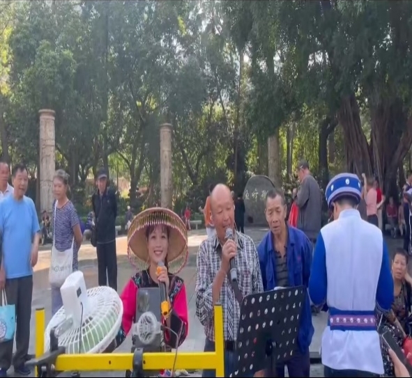 广西山歌不止在三月三唱,柳州人民更是把好日子放在歌里过。今天赶上了歌曲直播,穿着壮族衣裳的大姐和大哥在广场上热情地歌唱,欢快的歌声洋溢在每一个人心中。