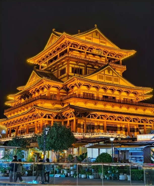 夜晚,华灯初上,龙城阁矗立在古镇中央,临江的街道旁,小吃摊更是数不胜数,炒螺蛳粉、鸡蛋仔、章鱼小丸子…