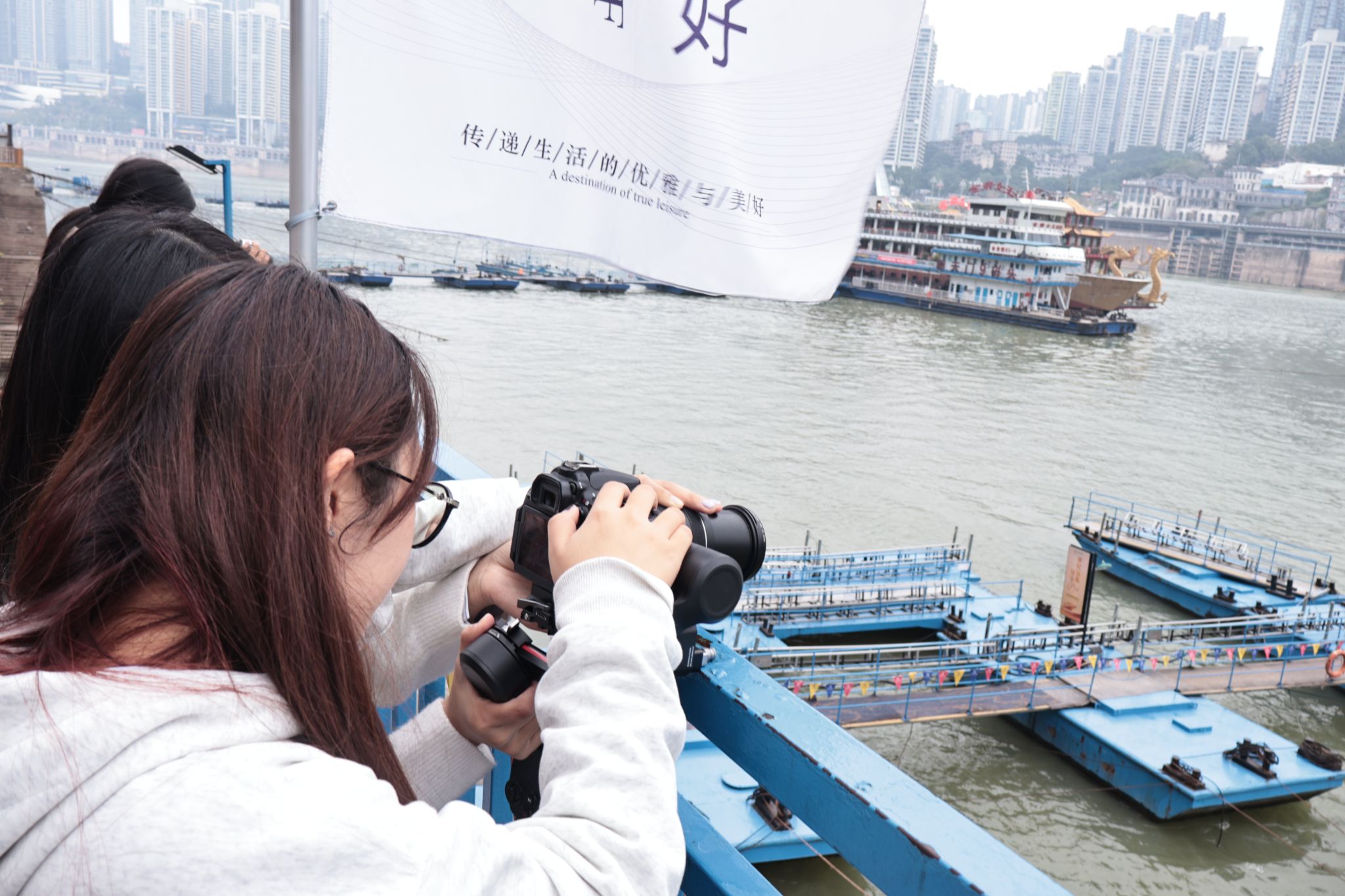 山城“棒棒军”的垂垂老去与重庆码头的蓬勃发展,共同演绎着这个城市的时代更迭。两个见习小组用相机定格下了这一刻的壮丽风光,捕捉属于山城独有的韵味。