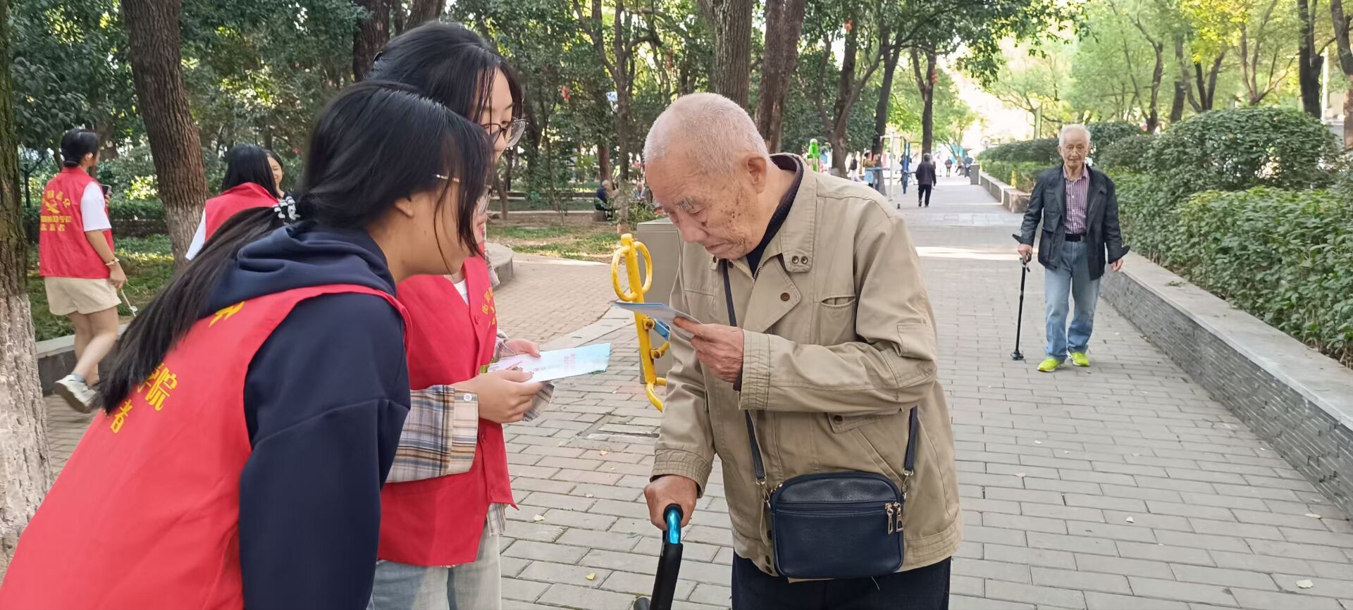 志愿者分发安全防范手册