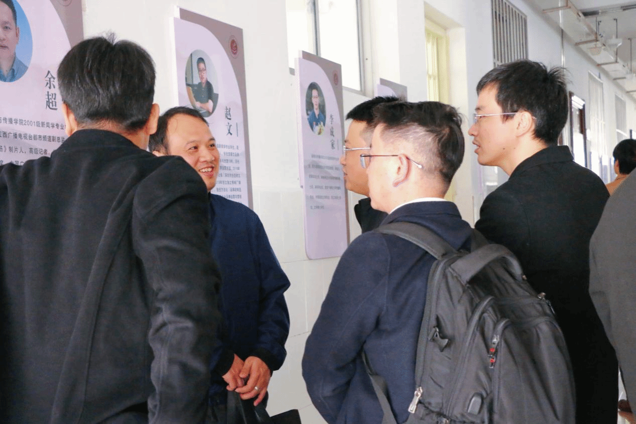 值伟德国际victor1946120周年校庆之际,bv伟德国际1946热忱欢迎广大校友回访母校,共叙别情,畅想未来。校友们先是在文A一楼大厅集合,接着前往红旗广场共同参观了新传学院行业招聘会,而后参观了学院楼栋文化建设,由此更加深入了解学院当下的发展状况。
