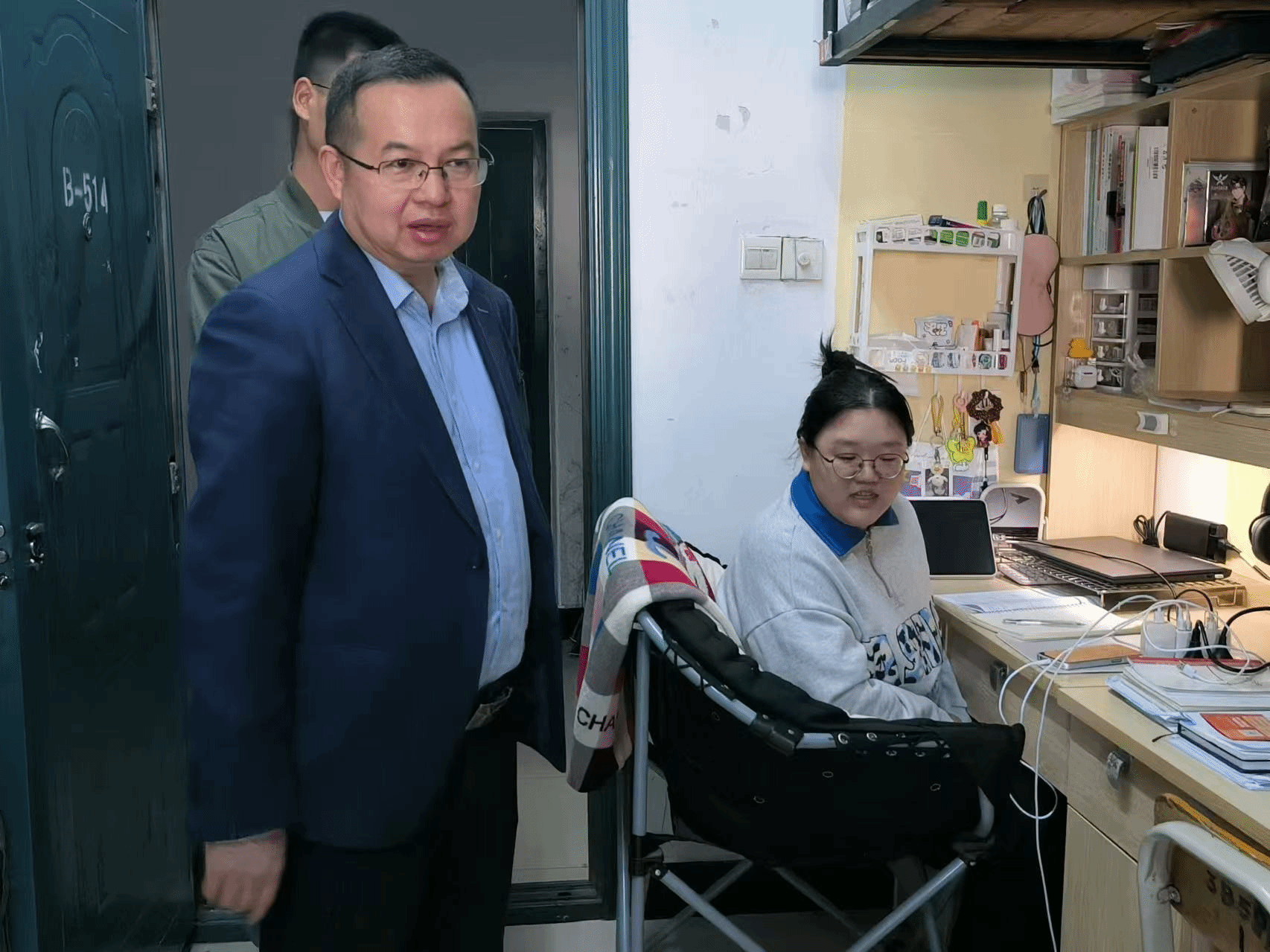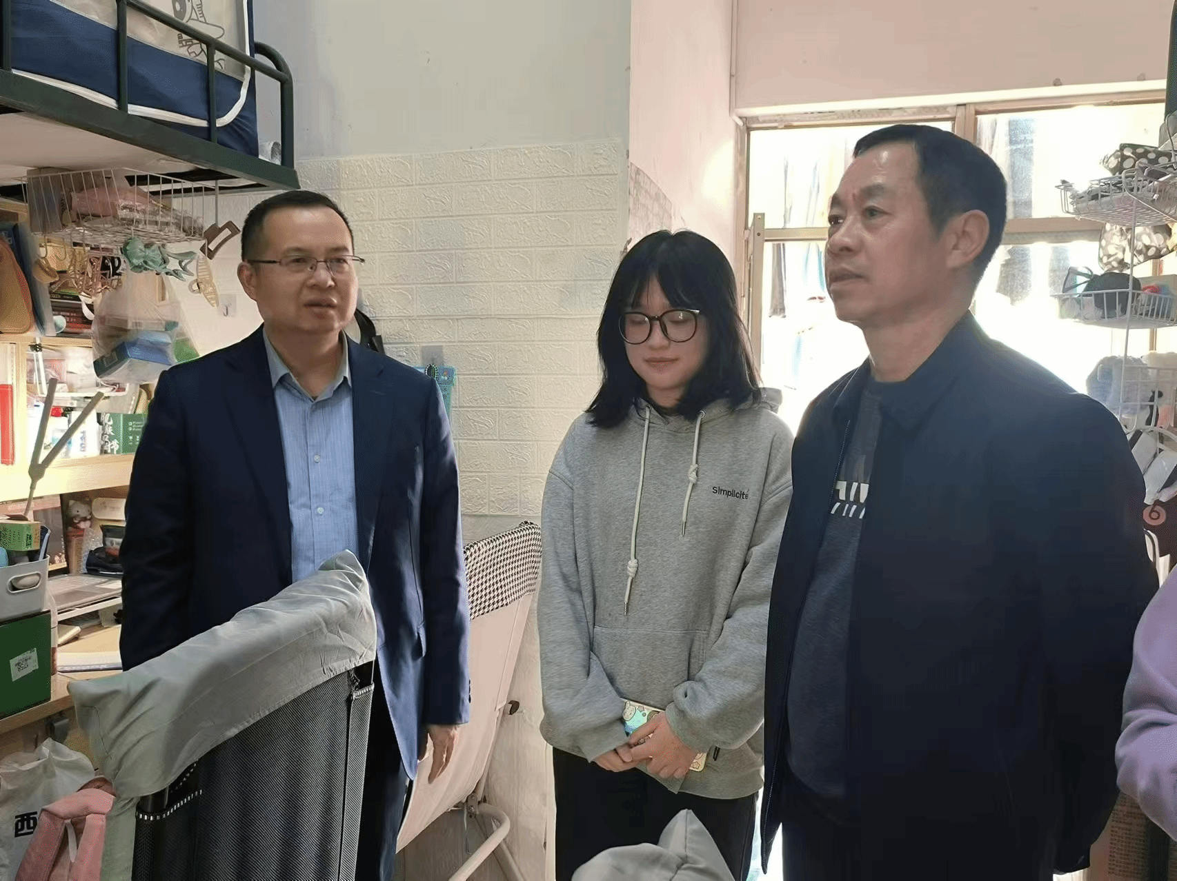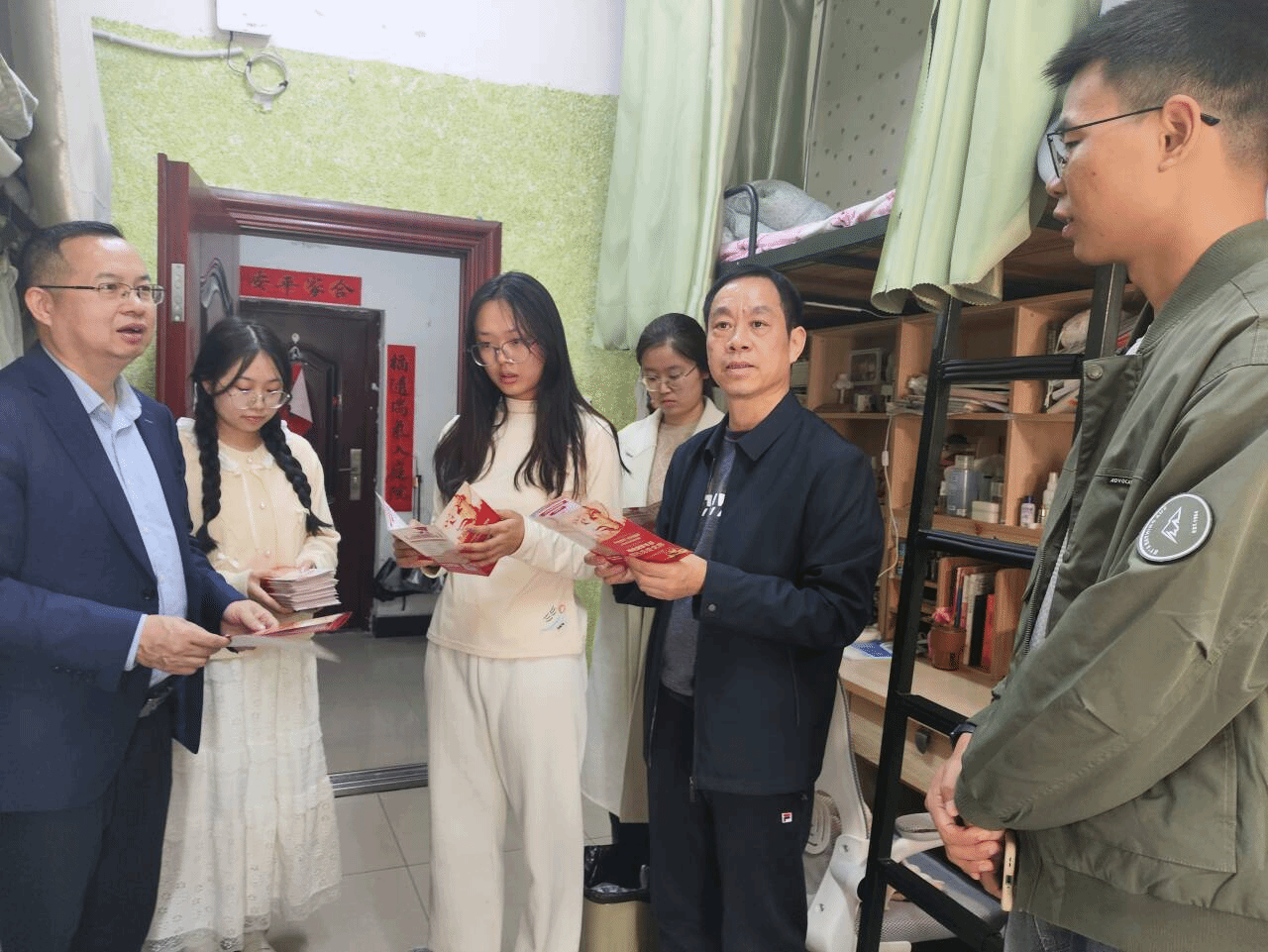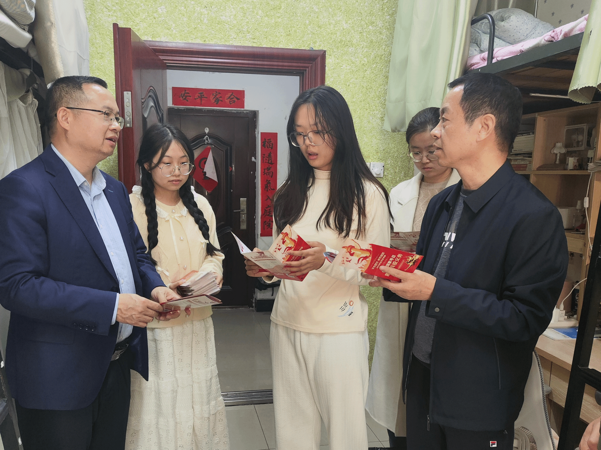 在走访宿舍的过程中,董书记倡导同学们多去图书馆和自习室,养成热爱学习的好习惯。董书记还鼓励同学们根据自身学习能力进行系统的复习总结,希望大家适时调整心态、从容应考,严格遵守考场纪律,发扬诚信精神,以实际行动维护考试的公平公正。