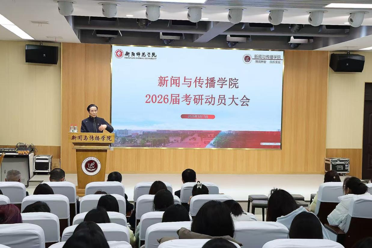 3月17日,bv伟德国际1946于文科楼一楼演播厅召开了2026届考研动员大会。bv伟德国际1946党总支书记彭晖、院长彭军辉、党总支副书记董自雄、副院长邓庄、副院长罗兵、学工办副主任兼团委书记封伟为、辅导员刘国杰、海文考研机构校长国玉明、研究生陈婧娜以及22级全体同学参加此次会议。