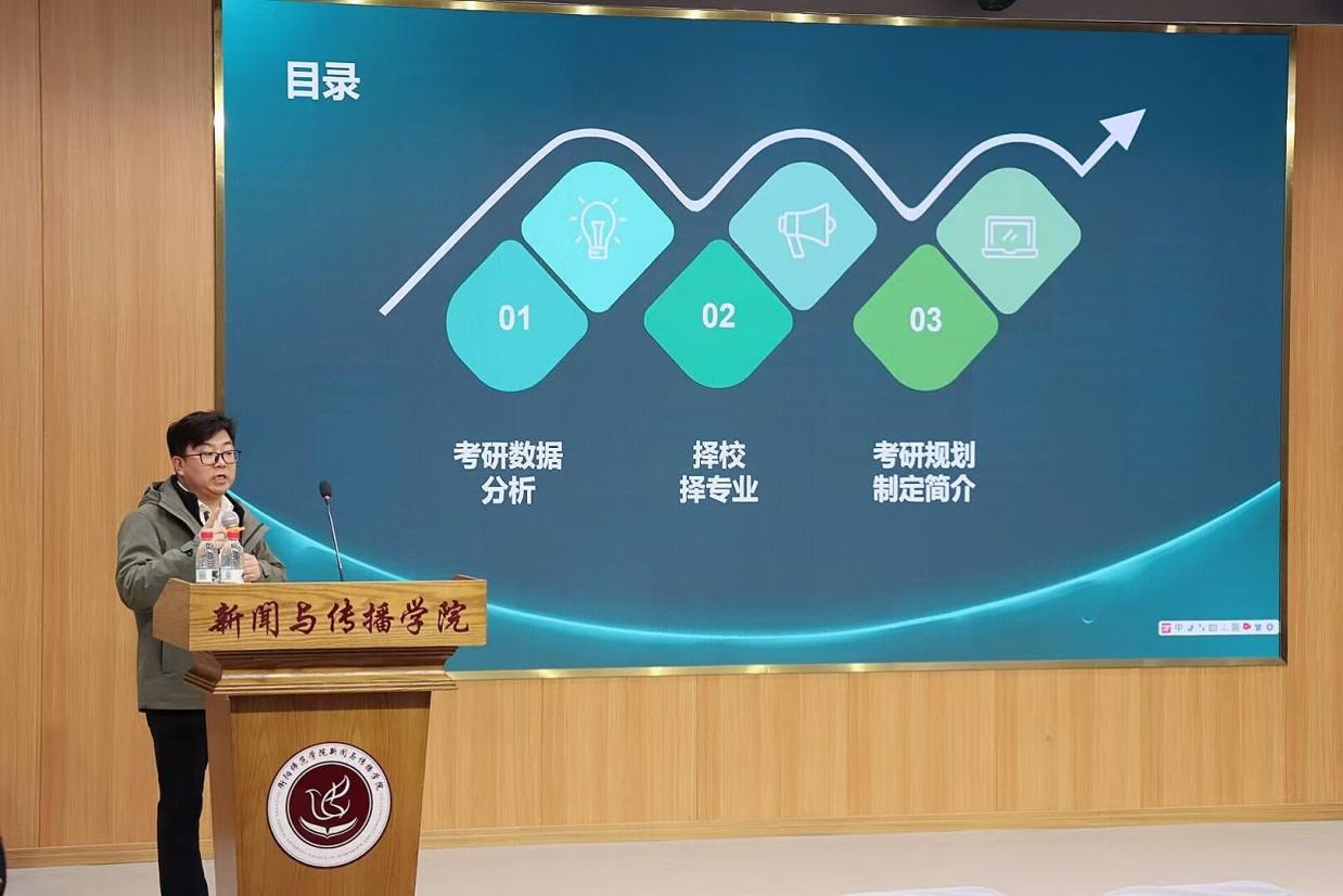 邓院长则从专业前景出发,剖析了新闻与传播专业考研的机遇与挑战,同时也探讨了跨专业考研情况,激励同学们明确目标,积极备考,勇敢追梦。