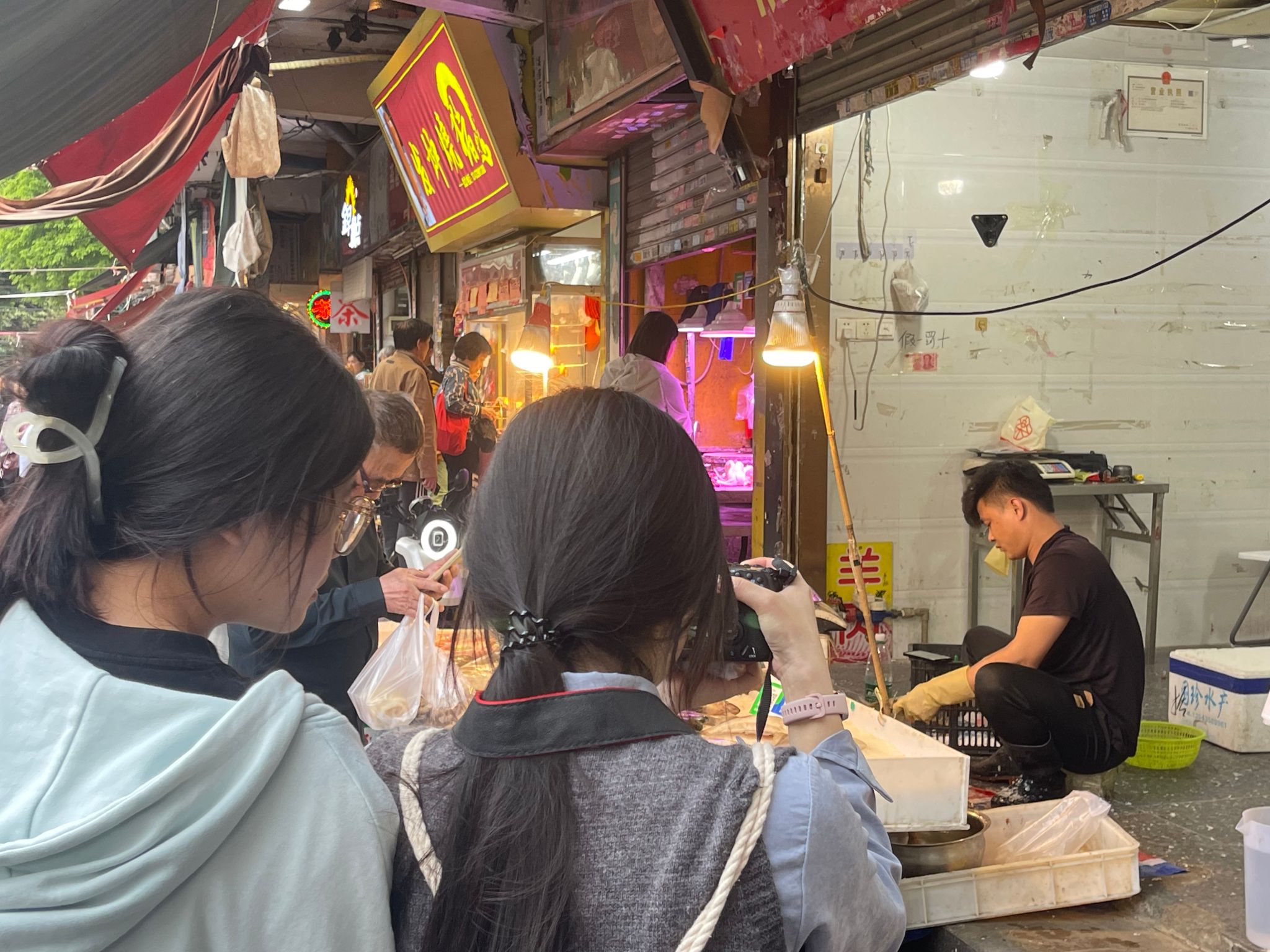 下午,我们前往广州海珠区甜水巷见习踩点。走进甜水巷,浓厚的生活气息便扑面而来。老人们满脸笑意,用方言热情地招揽生意,烟火气十足。