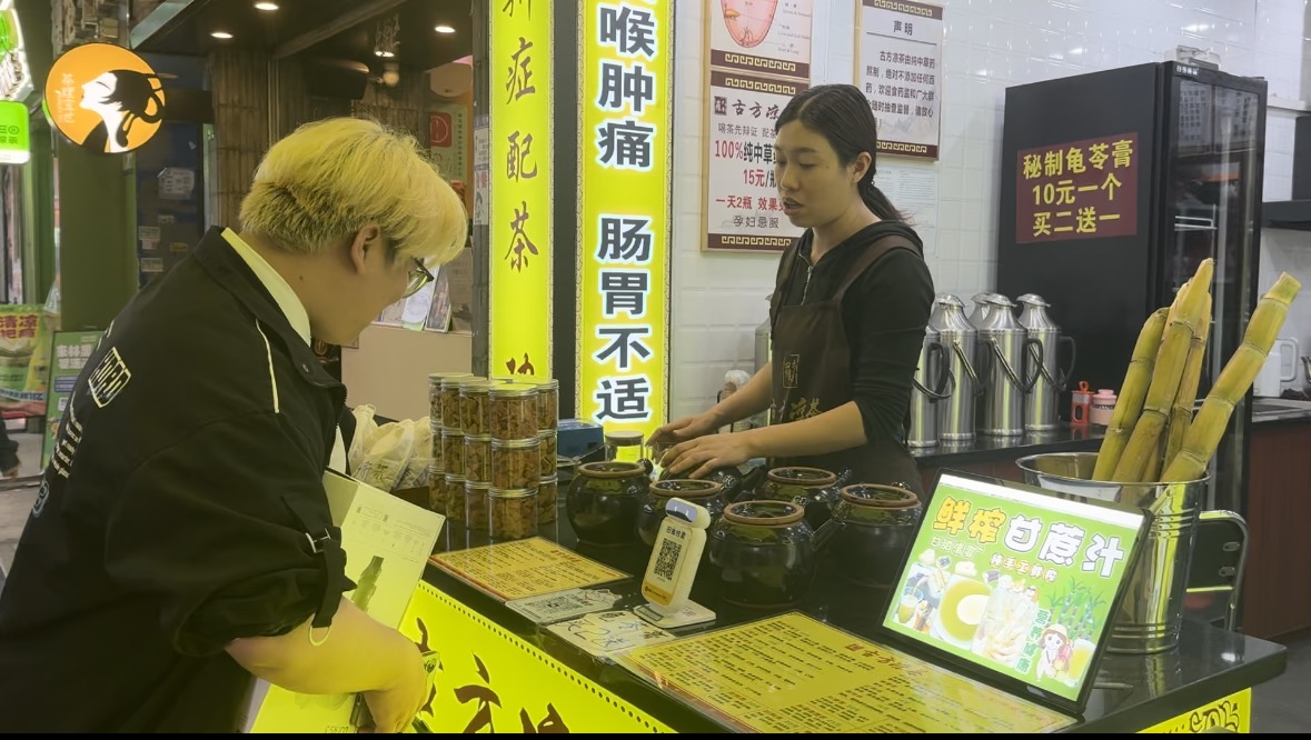 下午五时左右,我们前往特色凉茶店学习广东凉茶文化,品尝凉茶,在中药材店了解了一些中药,并进行相关拍摄活动。