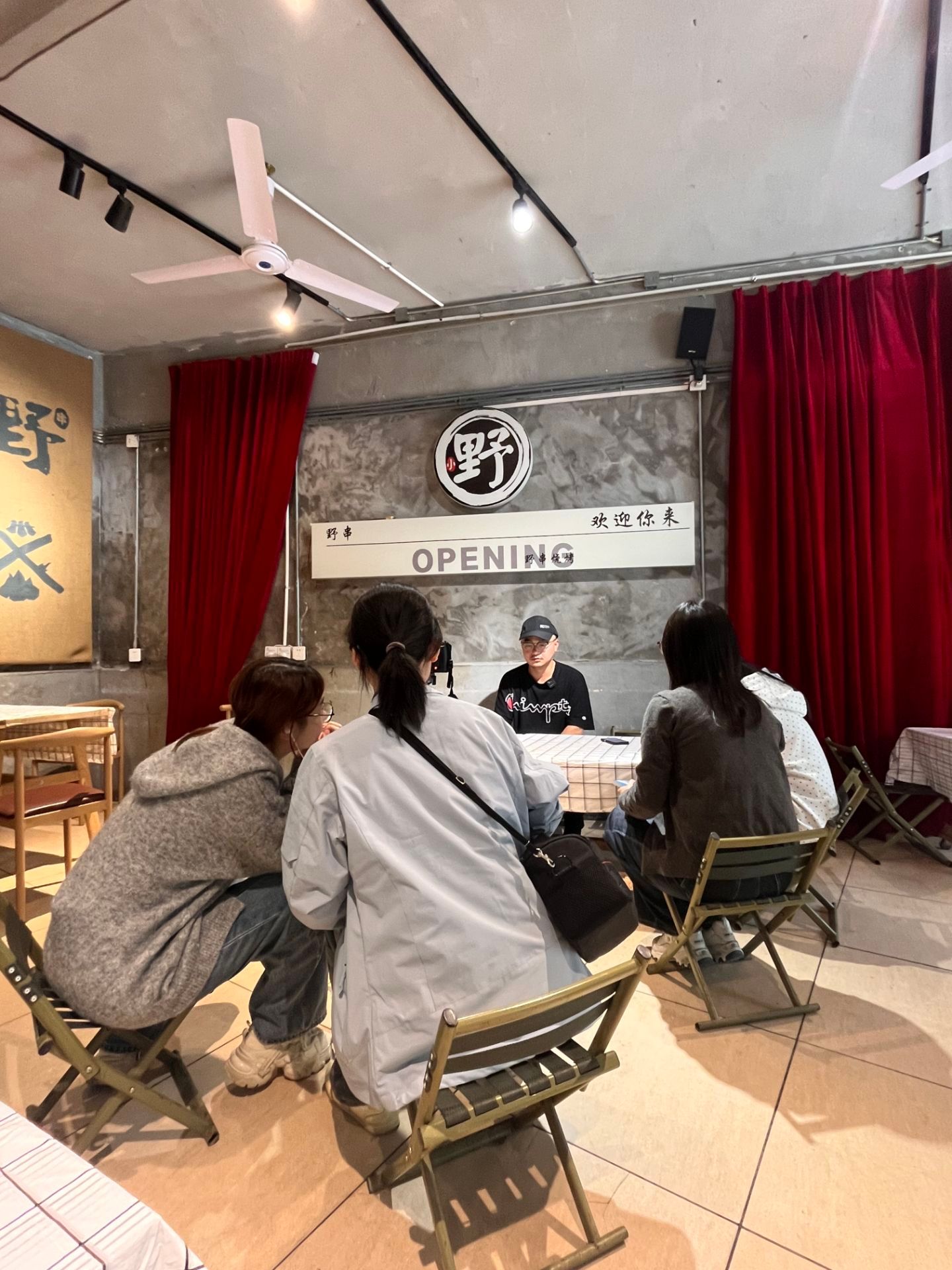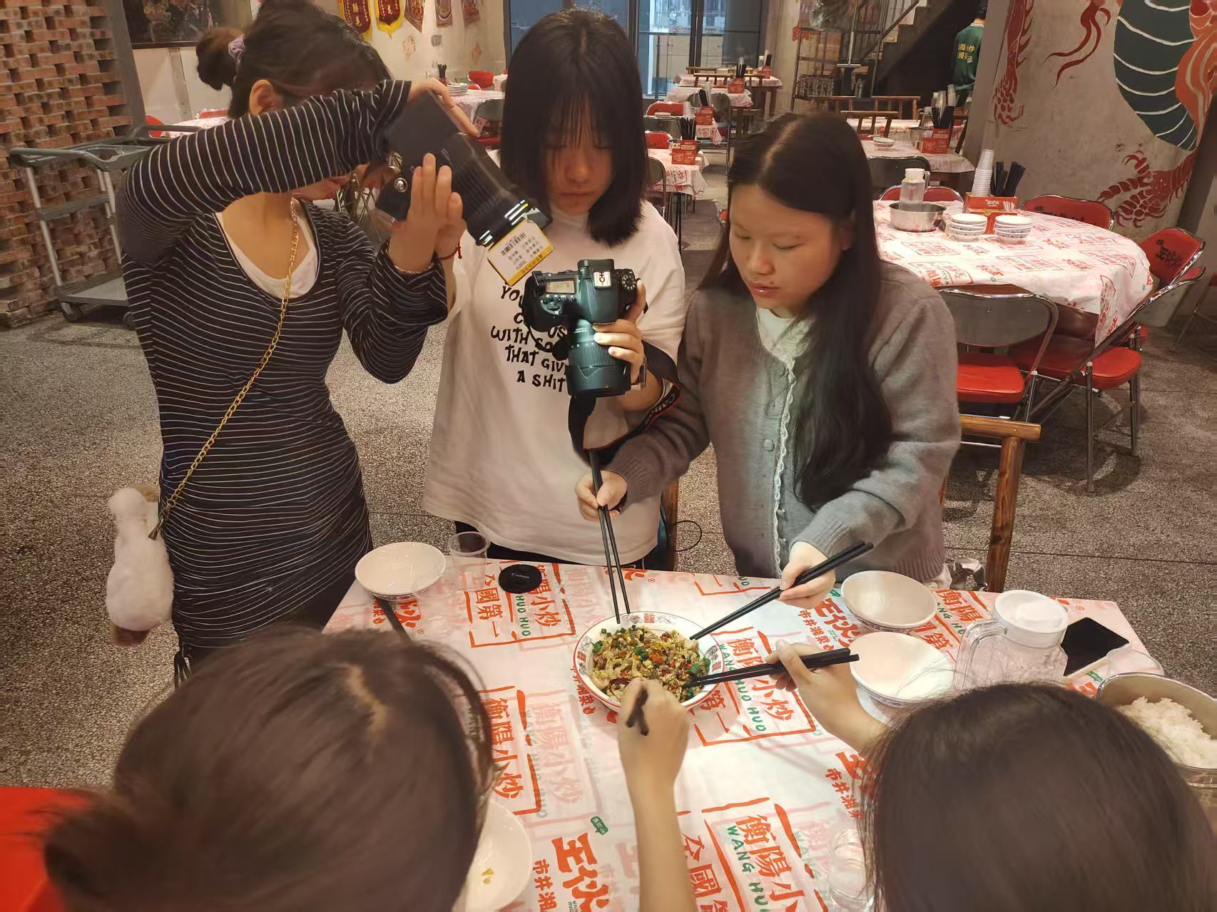 在傅毅飞老师的指导下,张雨轩组来到师院南门采访衡师毕业学长野串烧烤店老板的故事。调好设备后,便开启了采访任务。工作之余,小组成员还一起品味了舌尖上的美食。