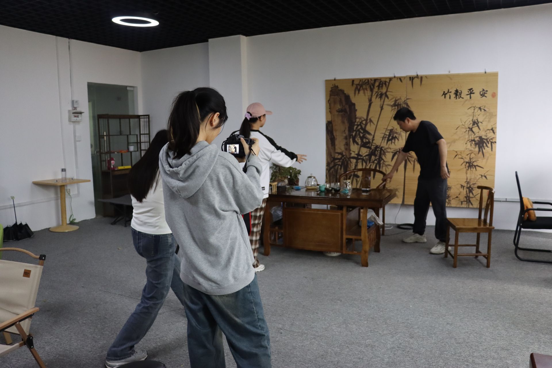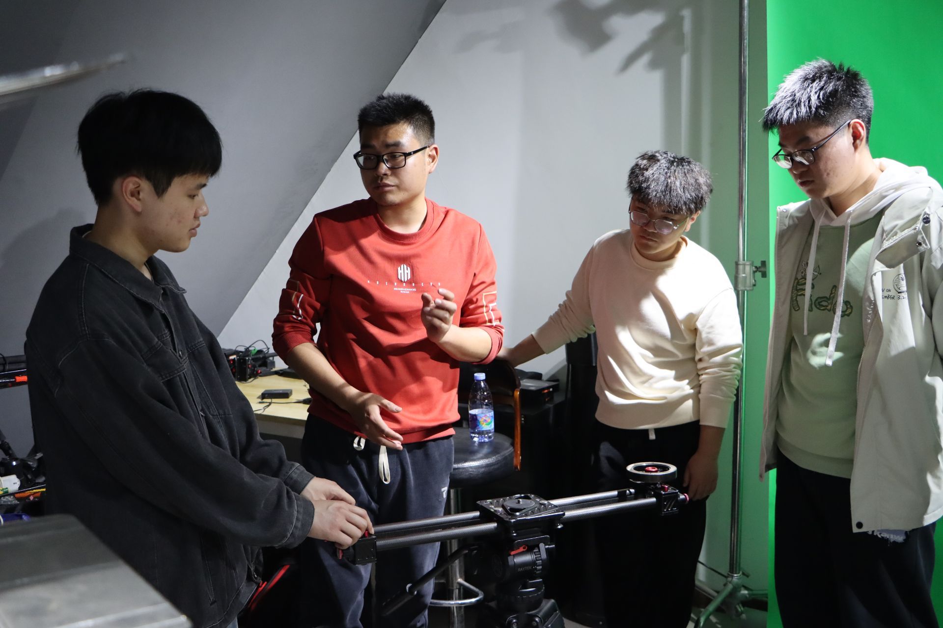 彭优小组和黄佳琳小组上午一起去物电学院进行空镜头拍摄,下午则在物电学院毕业学长的公司进行拍摄,完成了一系列的制作。