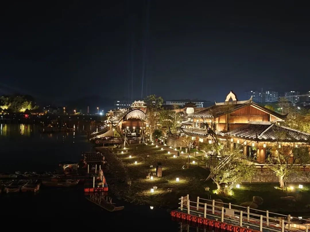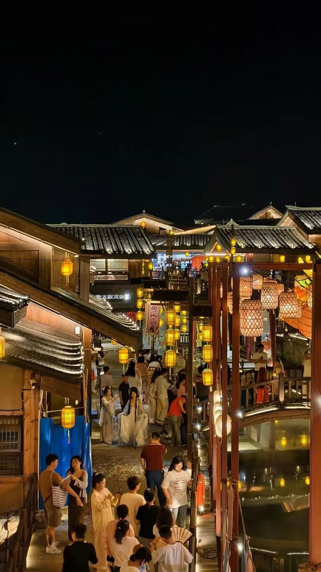 暮色中,南岳里街区千盏灯笼次第亮起,宫灯、纱灯、走马灯摇曳成橘红灯海。镂空灯影在砖墙上勾勒寿纹云饰,琉璃灯柱为木雕招牌镀金边,青石板水洼闪烁碎金。我们以低机位仰拍灯串如星河落人间,定格游客剪影与灯火交织的市井图景。