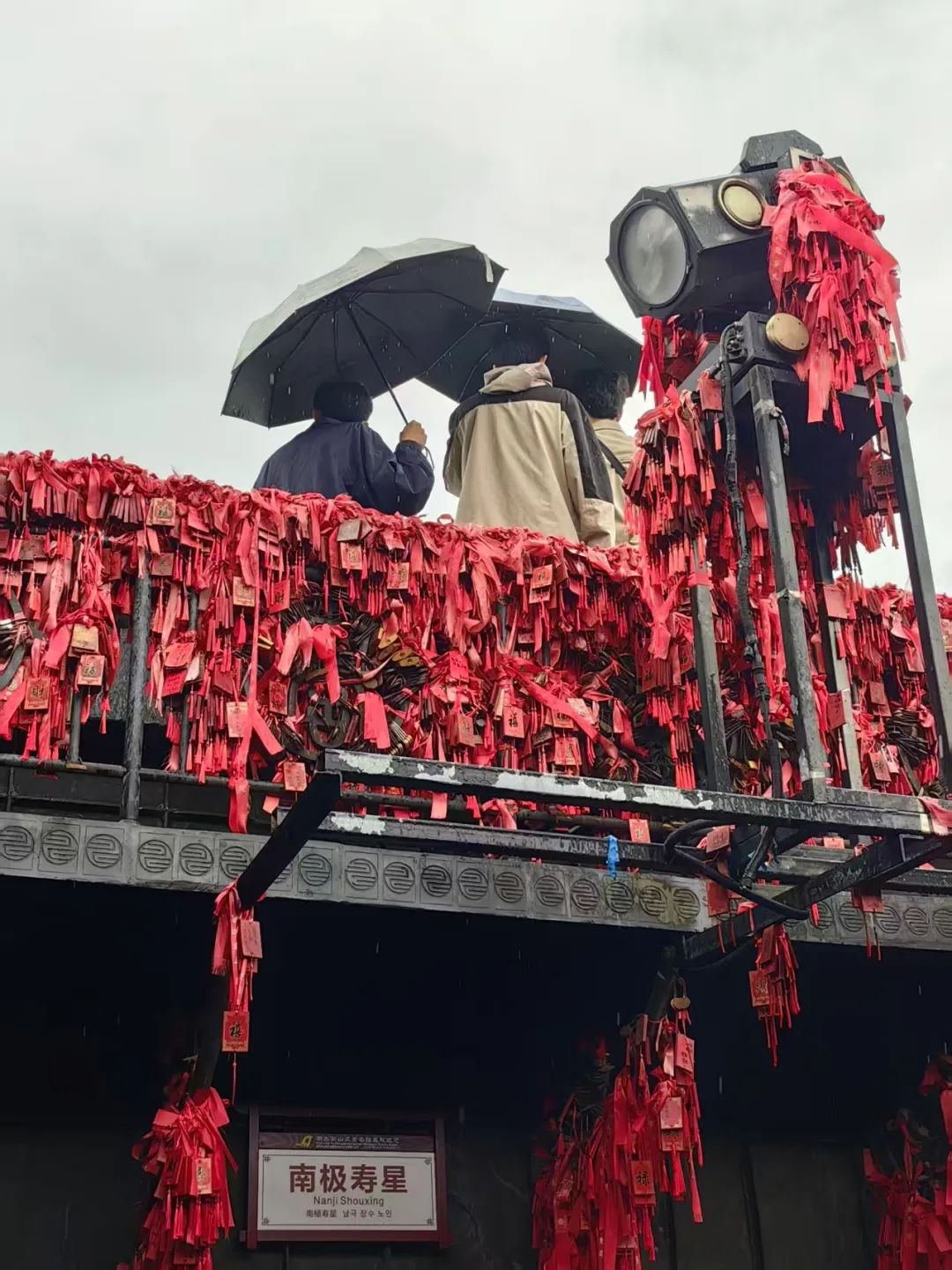 晨光里,48米高的青铜万寿大鼎在薄雾中显雄浑,鼎身万“寿”字、56块汉白玉浮雕,承载着中华寿文化的厚重。拾级而上,指尖划过斑驳的纹路,恍若与上古文明、帝王封禅对话;无人机视角下,鼎与衡山七十二峰在云雾中相映,让“寿比南山”的传说在镜头里化作自然与人文的同频共振。