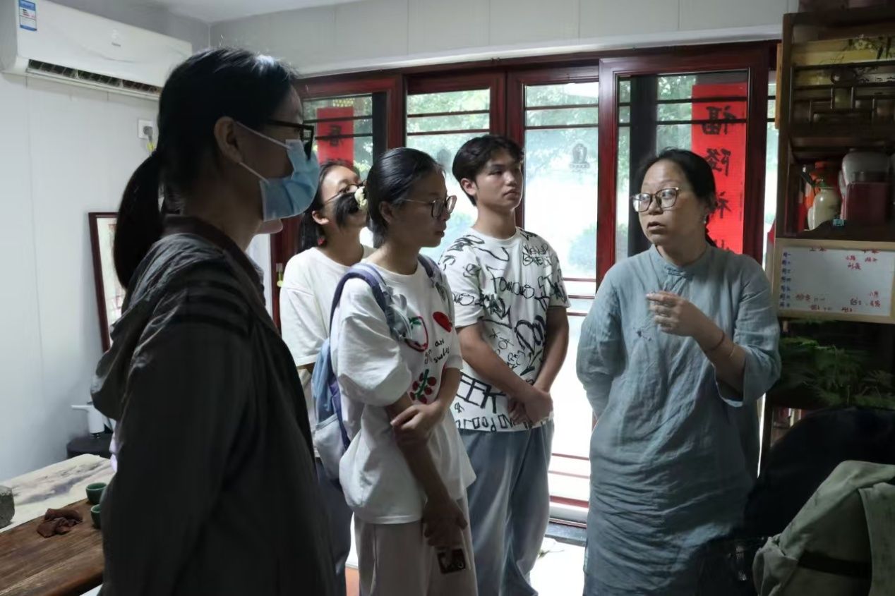 到琴房时,老师刚教完学生,正坐在茶几旁喝茶。一进门就被古色古香的布置圈粉了!刘艳老师超热情地招呼我们进去,聊了聊她的经历后,我们就开始拍她上课的样子。