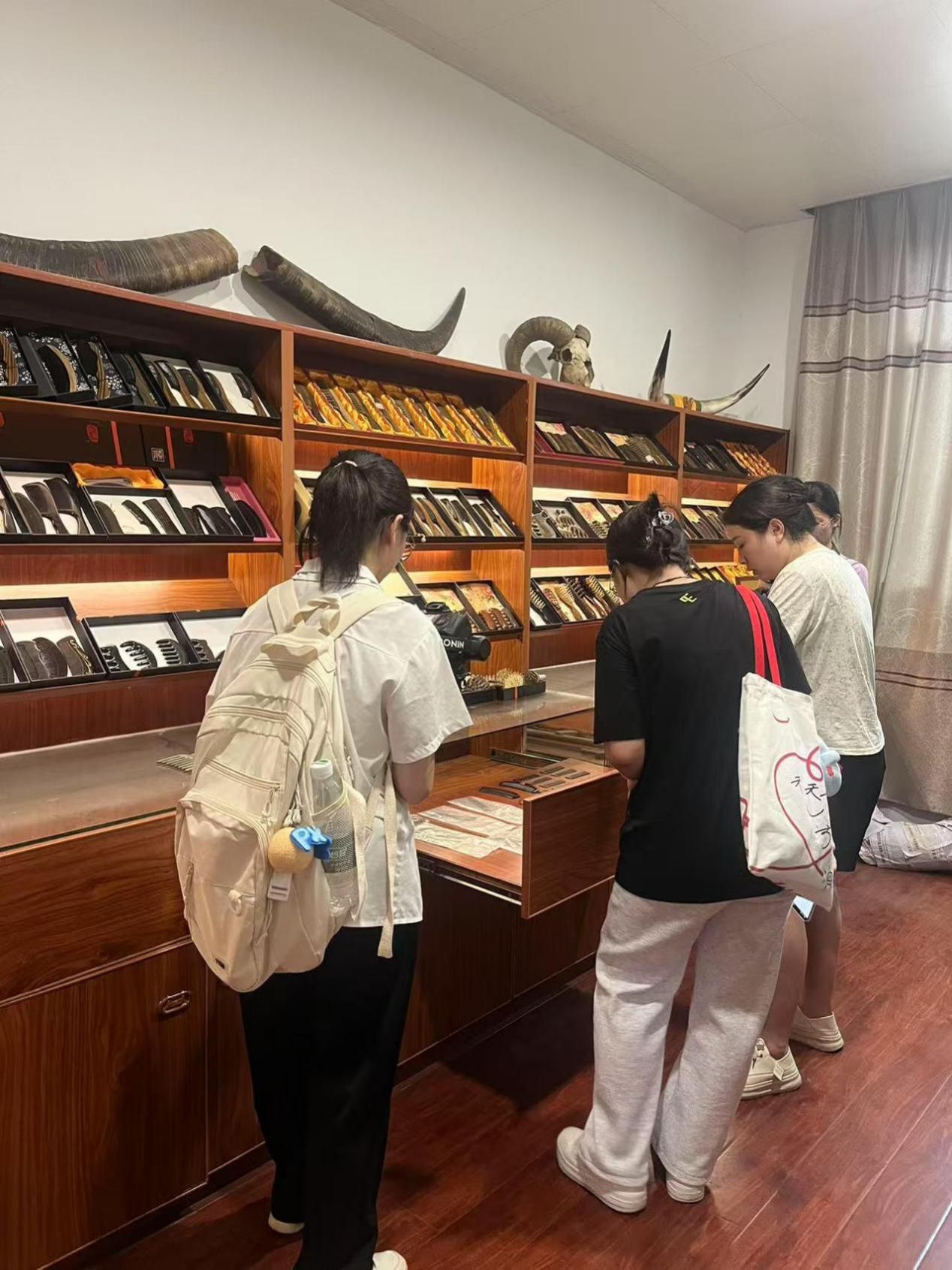 下午两点半,小组携带专业摄影设备、补光灯和录音器材,精神抖擞地重返许氏梳业。这次拍摄,我们提前做足准备,围绕匠人精湛的制作工艺、品牌百年传承故事展开深度采访。在采访过程中,小组成员与匠人深入交流,了解每道工序背后的故事和匠心。同时,摄影师架起微距镜头,选取不同角度,捕捉梳背雕花时刻刀游走的轨迹、梳齿打磨后折射的光泽等细节,以特写镜头定格非遗梳艺的精妙匠心,力求用影像让观众感受到传统梳艺的独特魅力和深厚底蕴。