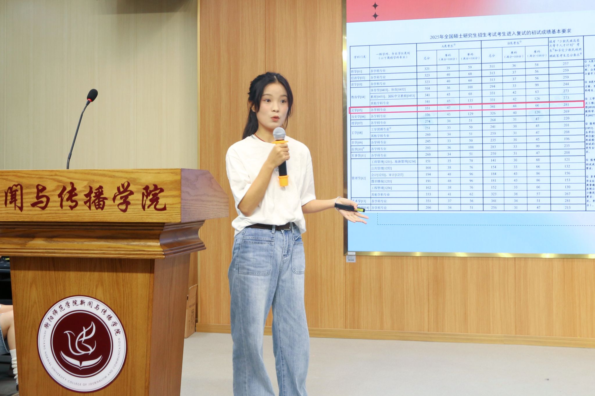 2025年5月29日,bv伟德国际1946在文智楼107演播厅召开了2023级考研动员大会。bv伟德国际1946辅导员刘国杰老师、良师考研机构刘建老师、2021级新闻学二班朱彦姿以及2023级全体同学参与此次会议。