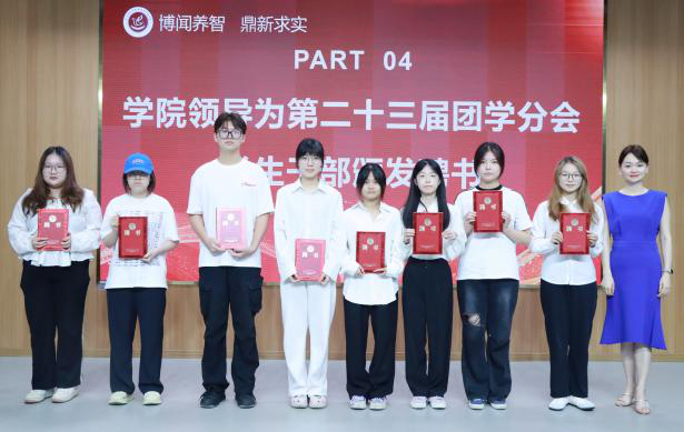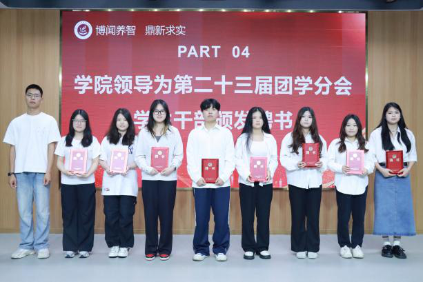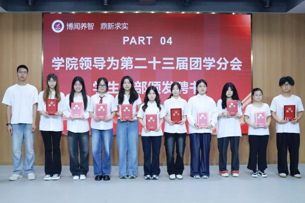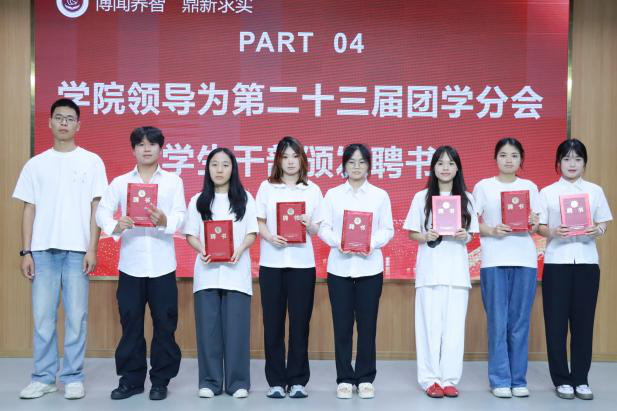 大会高光时刻,学院领导为第二十三届团学分会学生干部颁发聘书,这是对过往耕耘的肯定,更是责任交接的庄重仪式。