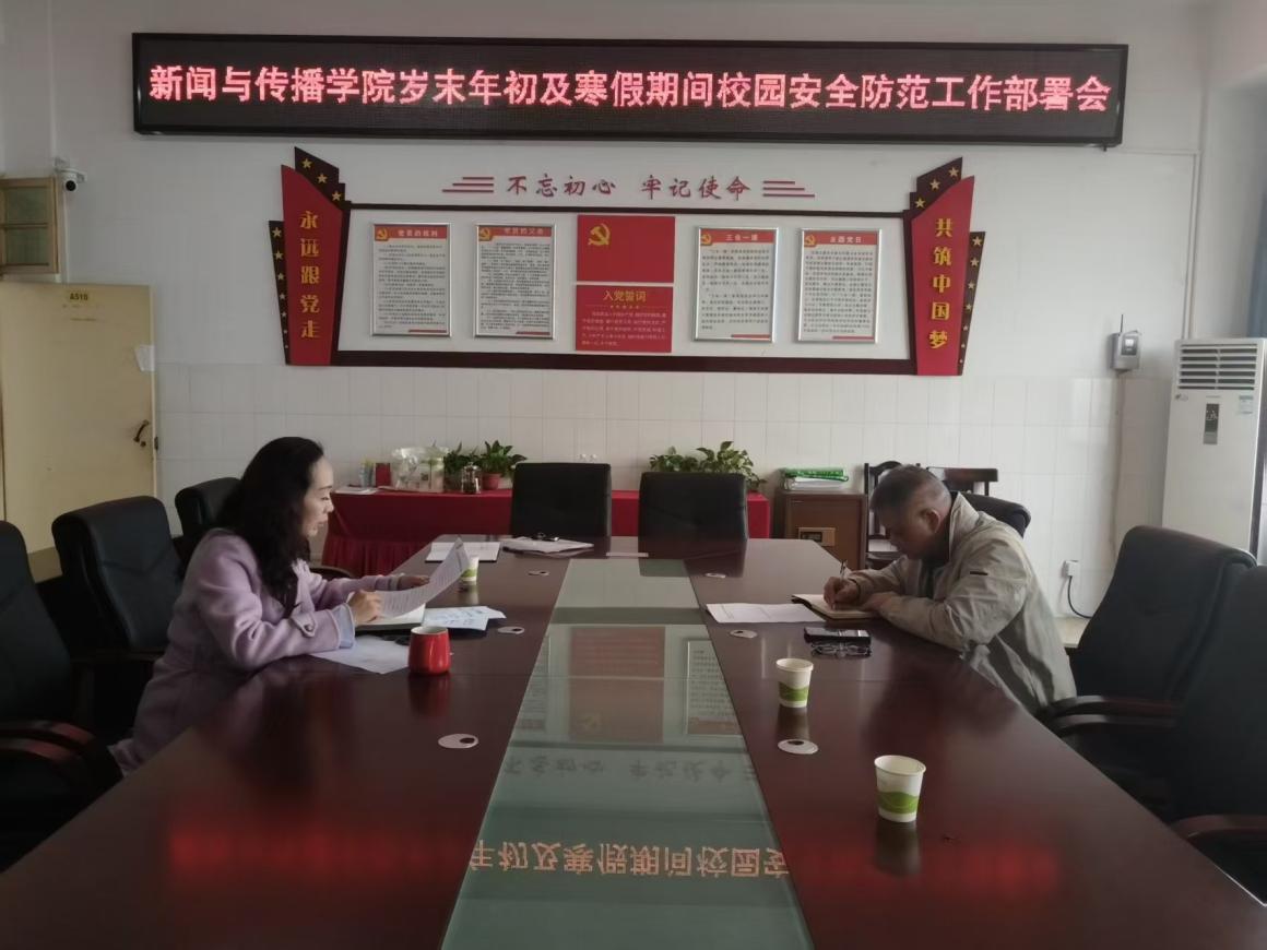为落实学校安全工作要求,2025年12月30日,bv伟德国际1946于仁智楼A510会议室召开岁末年初及寒假安全防范工作会议部署会,bv伟德国际1946党总支书记何芳、副院长罗兵参会。会议围绕责任落实、重点领域防控及安全教育应急三方面进行安排,要求全员协同履职,系统排查消防、校舍、实验室、食品卫生、学生管理及交通等隐患,加强安全宣传,全力维护校园安全稳定。