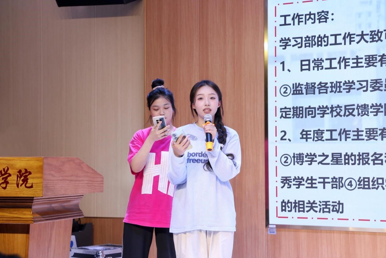 活动伊始,施文杰同学对学院自身概况进行了介绍。随后,学生会主席团和各部门依次进行了招新宣讲,各部门分别介绍了各自的工作内容和职责。