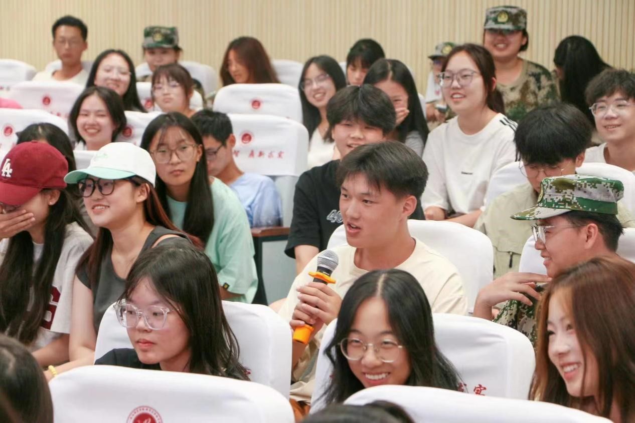 中秋小游戏是本次活动的亮点,包括中秋诗词飞花令、闹钟炸弹和猜灯谜三个环节。在飞花令中,同学激烈角逐,现场气氛热烈,充分展现出同学们深厚的诗词功底。闹钟炸弹游戏充满了紧张与欢乐的氛围,主持人定好闹钟后,同学们互相问问题并传递话筒,当闹钟响起时,拿着手机的同学需上台表演即兴小节目,这些节目精彩纷呈,赢得掌声阵阵。猜灯谜环节趣味十足,同学们积极抢答,答对三个灯谜的同学们获得了中秋小礼品,大家在游戏中深切感受到了传统文化的魅力。