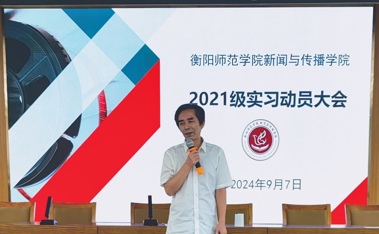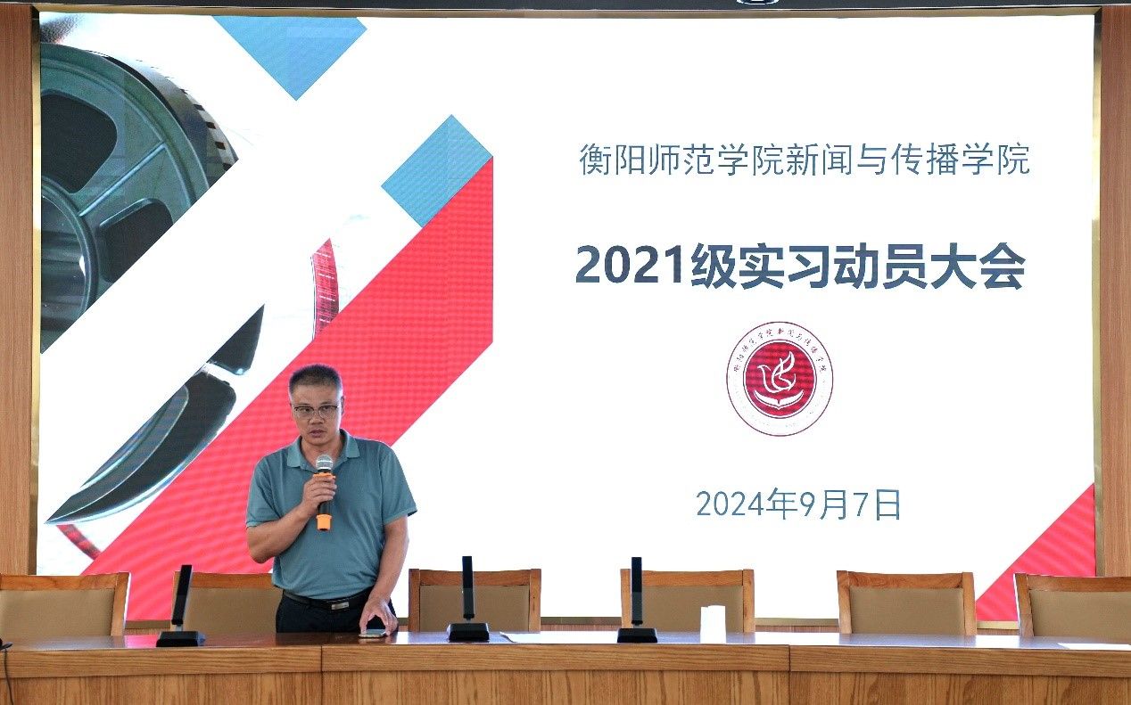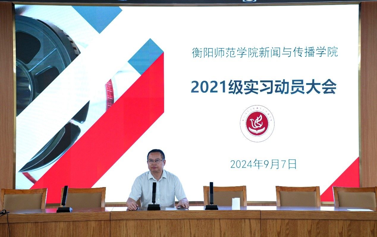 为推动实习工作有序开展,使大四学生明确实习与毕业相关事项,2024年9月7日下午,新闻传播学院在文科楼A多功能演播厅召开2021级实习动员大会。bv伟德国际1946院长彭军辉、党总支副书记董自雄、副院长罗兵出席本次大会,2021级全体学生参与。