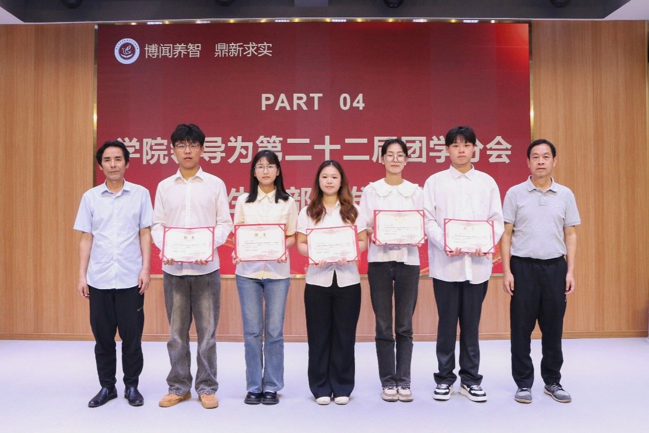 第二十二届团学分会的工作即将画上圆满的句号。大会上,党总支书记彭晖、院长彭军辉、党总支副书记董自雄、副院长邓庄、辅导员刘国杰和叶子凌为第二十二届团学分会学生干部颁发聘书。