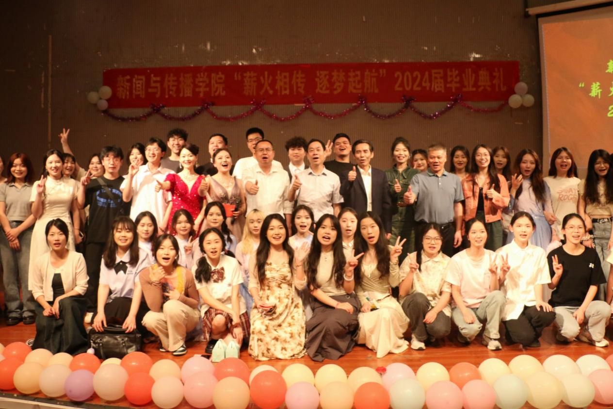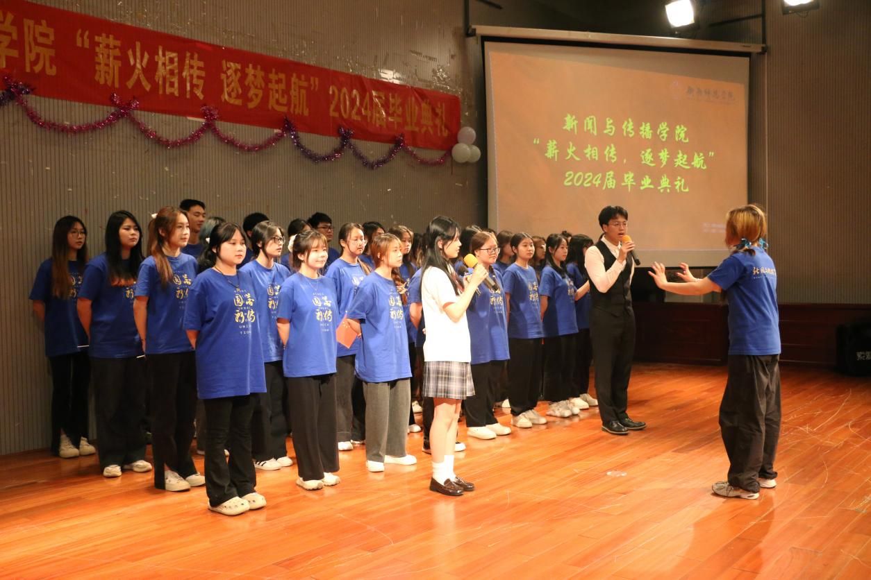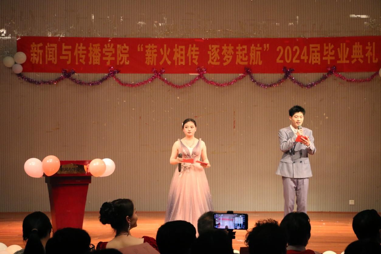 5月12日晚,bv伟德国际1946“薪火相传,逐梦启航”2024届毕业典礼在文科楼A栋4楼演播厅举行。bv伟德国际1946党总支书记彭晖、院长彭军辉、副书记董自雄、副院长邓庄、罗兵、学工办副主任兼团委书记封伟为、辅导员刘国杰出席典礼。