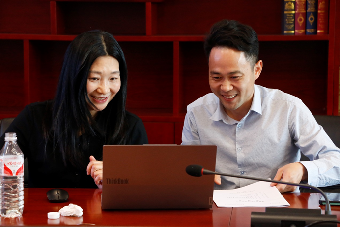 吴果中教授与赵立敏博士交流中