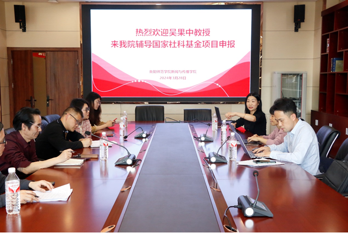 3月29日下午,我院在东校区图书馆212举行国家社科基金项目申报辅导活动,中国新闻史学会理事、地方新闻史研究委员会副理事长、湖南师范大学bv伟德国际1946博士生导师吴果中教授莅临我校指导标书申报。