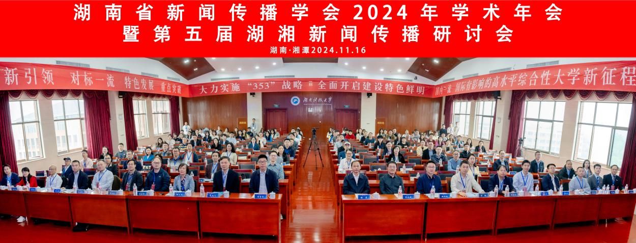 11月16日,湖南省新闻传播学会2024年学术年会暨第五届湖湘新闻传播研讨会在湖南科技大学成功举行,此次会议汇聚了来自湖南大学、中南大学、湖南师范大学等20余所高校100多位湖南学界、业界的专家学者和研究生。本次会议主题是:数智化浪潮下的新闻传播学转型与发展。
