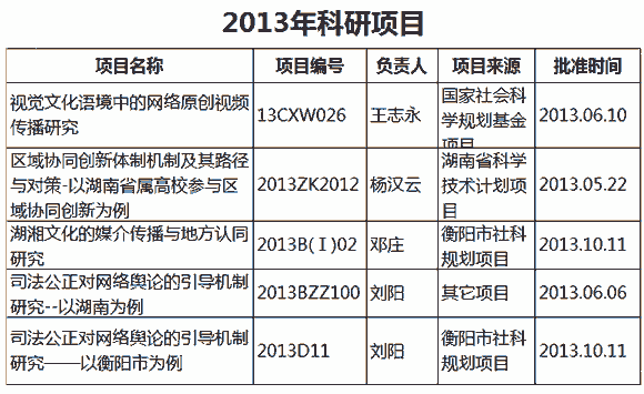 2013年科研项目