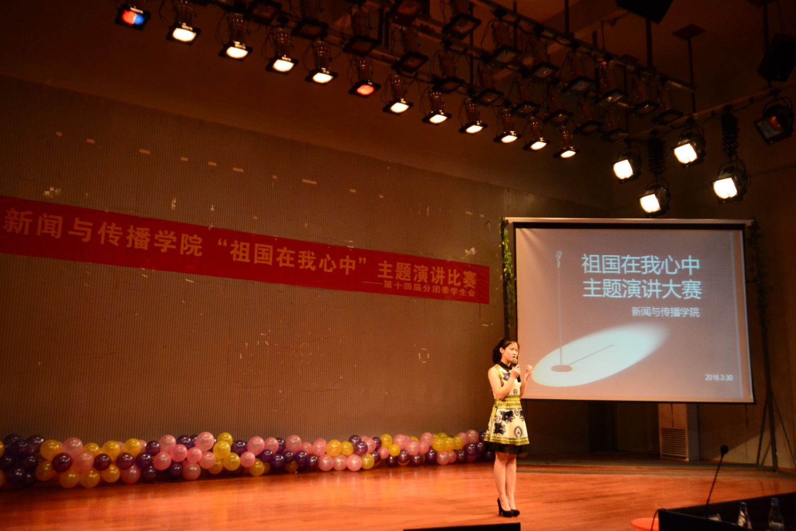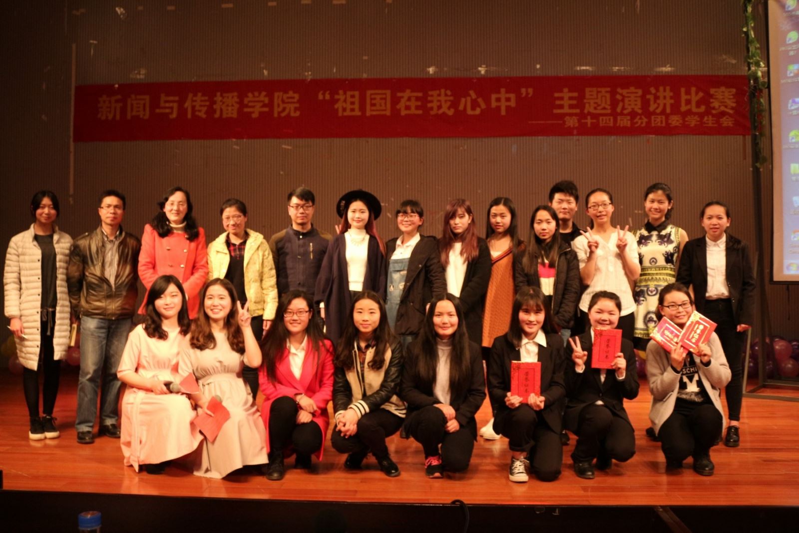 3月30号晚,bv伟德国际1946 “祖国在我心中”主题演讲大赛在模拟演播厅举行,来自14、15级各专业共9名选手参加本次比赛。bv伟德国际1946优秀老师熊雅静、陈小波,优秀学生尚彬、曾雅琼、孙文娟共同担任比赛评委。