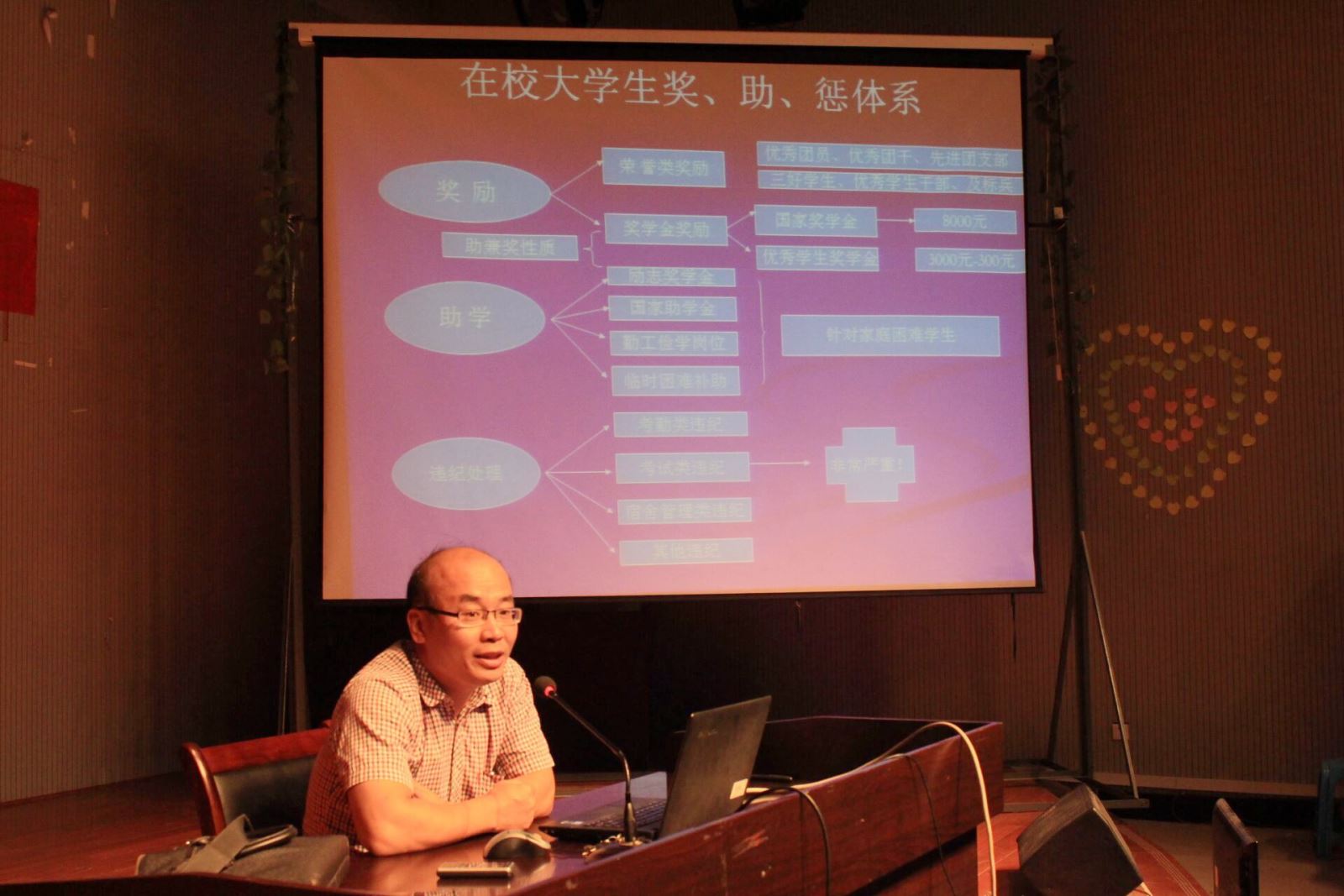 座谈会的最后一场上,辅导员资禹剑老师主要介绍了学院的奖、助和违纪处理体系,详细的为大家解释了奖、助、违纪处理之间的关系,并详细介绍了评优评先和危机处分的项目及其基本标准。