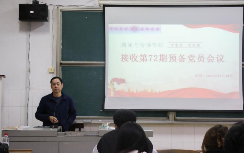 2024年11月18日,bv伟德国际1946学生第一党支部接收预备党员会议于文科楼A609顺利召开。本次会议由学生第一党支部组织委员曾雨恬主持,bv伟德国际1946党总支书记彭晖、党总支副书记董自雄、学生第一党支部书记刘国杰出席,学生第一党支部全体学生党员、发展对象及其入党介绍人参会。