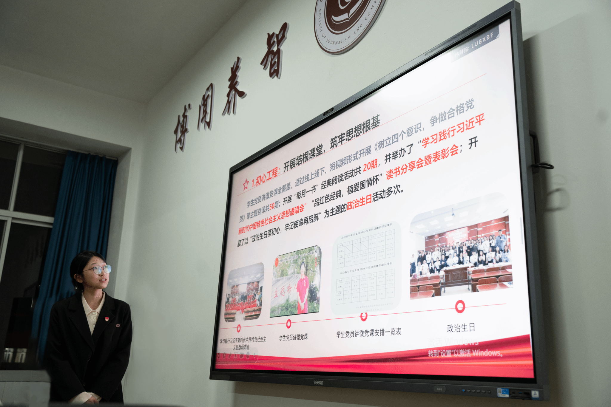 法学院党员代表杨茹珺以“建强红色堡垒,赋能铸魂育人”为主题,系统介绍了样板党支部的建设经验。她提到,法学院通过“三会一课”制度规范化、主题党日活动品牌化、党员先锋作用常态化“三化联动”,打造了“党建+法苑众谈”“党建+纵横历史协会”双轮驱动模式。例如,建设红色文化长廊、设置红色读书角,依托模拟法庭、社区普法宣讲等活动,将专业实践融入党性教育。