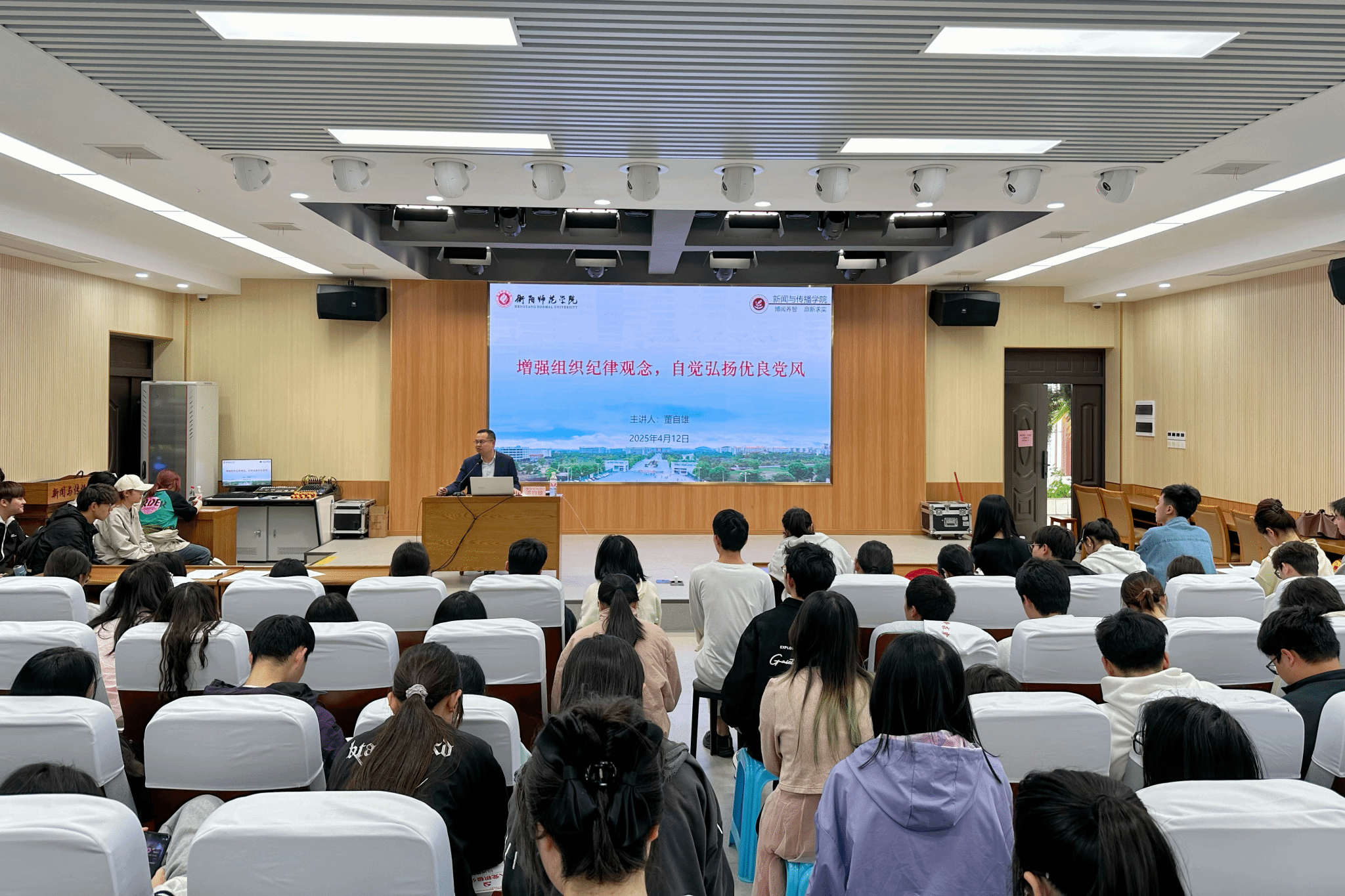2025年4月12日,bv伟德国际1946开展“增强组织纪律观念,自觉弘扬优良党风”党课培训。本次会议由我院党总支副书记董自雄担任主讲人,我院第71期全体入党积极分子到场聆听。