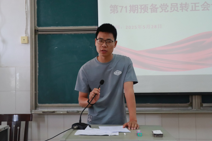 大会开场,刘国杰老师强调预备党员转正相关事宜,并宣读预备党员转正名单。10名预备党员围绕预备期一年的成长,向党组织进行全面汇报,从入党动机的坚守、政治觉悟的提升、思想动态的转变,到社会实践的担当、学业情况的进步,多维度阐述自身发展,展现向党组织靠拢的成熟姿态。