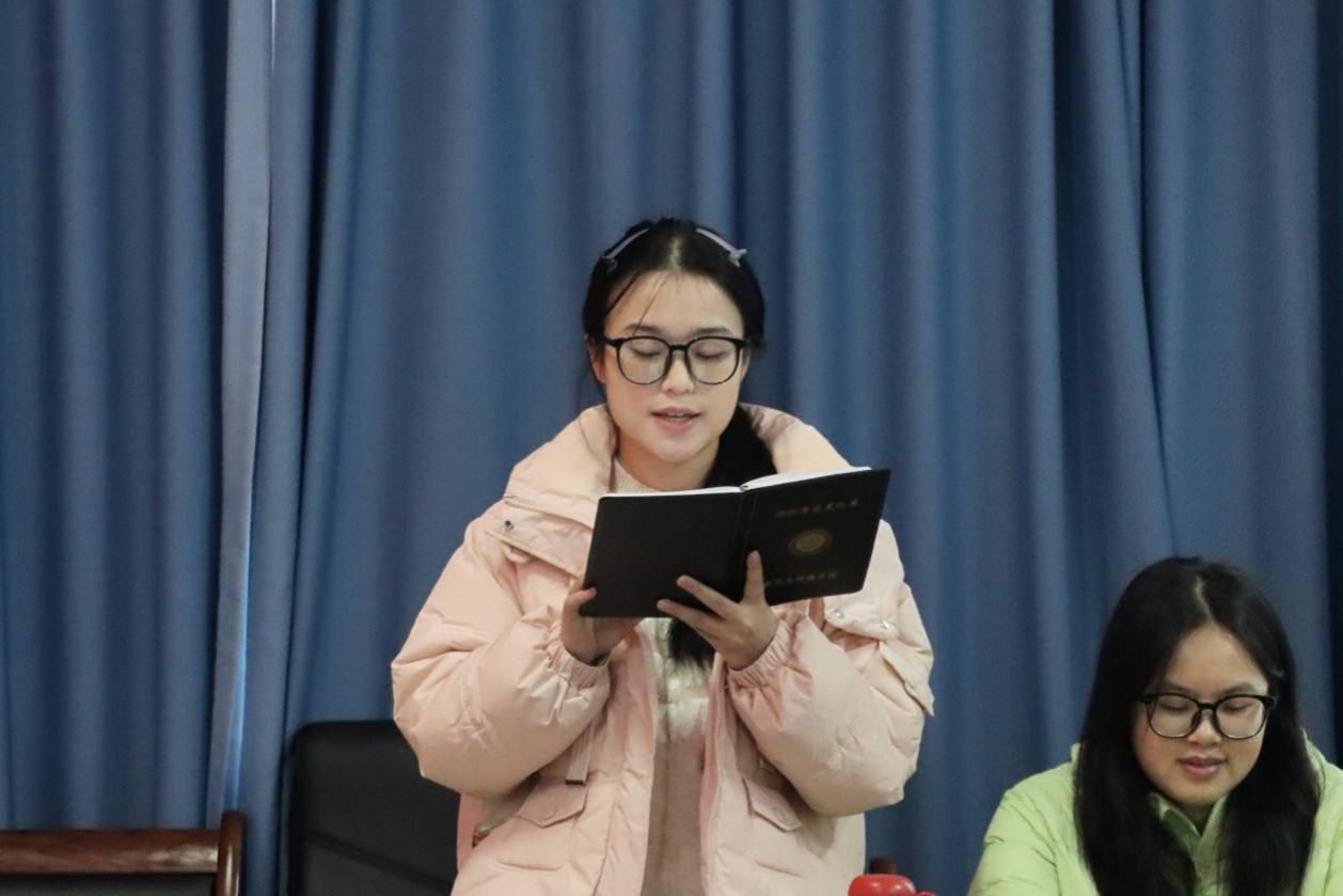 2025年12月23日,bv伟德国际1946学生第一党支部在仁智楼 A510 召开民主评议党员会议。本次会议由学生第一党支部组织宣传委员唐虹主持,学生第一党支部书记刘国杰及支部全体党员参加。