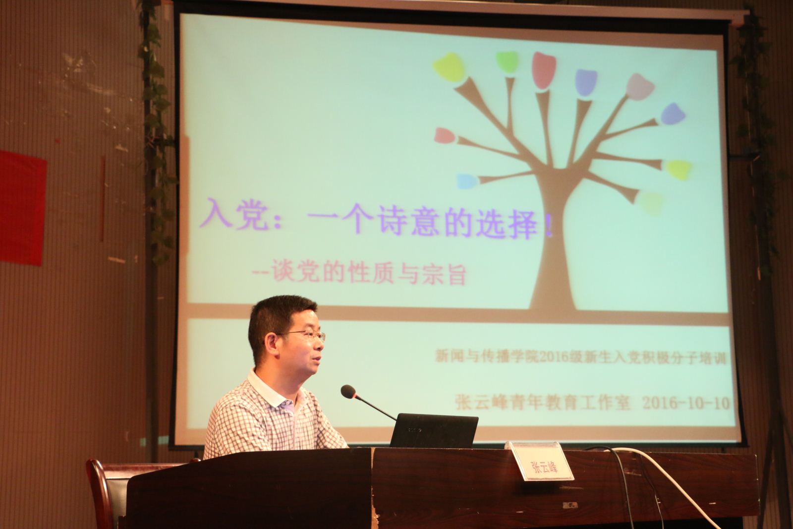 课上,张云峰书记结合名人事例提出了“一个诗意的选择”这一党课主题。他说,大学是一个忙碌充实的学习阶段,应当抓住机会,学会选择和改变,入党就是一次积极而又诗意的选择。